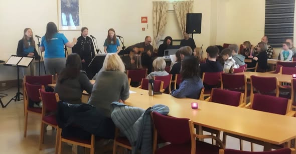 I Eid er det Laurdagsgraut på Eid kyrkjetun kl. 13-15, leia av Håvard og Magni, med god hjelp frå mange frivillige. På biletet under ser vi Eid Soul Children synge for alle gjestane. Takk til alle tilsette og frivillige som lagar til Laurdagsgraut!